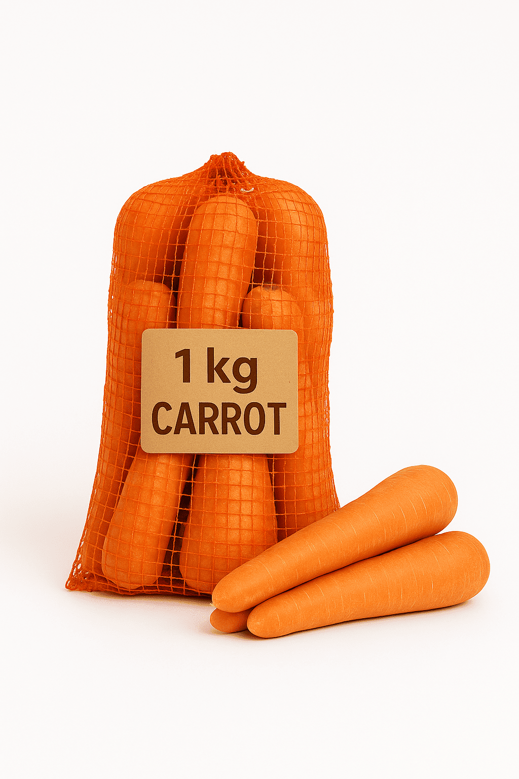 Fresh and crisp carrots packed in a convenient 1kg pack, perfect for salads, cooking, or snacking. Known for their rich orange color, these carrots are a great source of beta-carotene and dietary fiber.